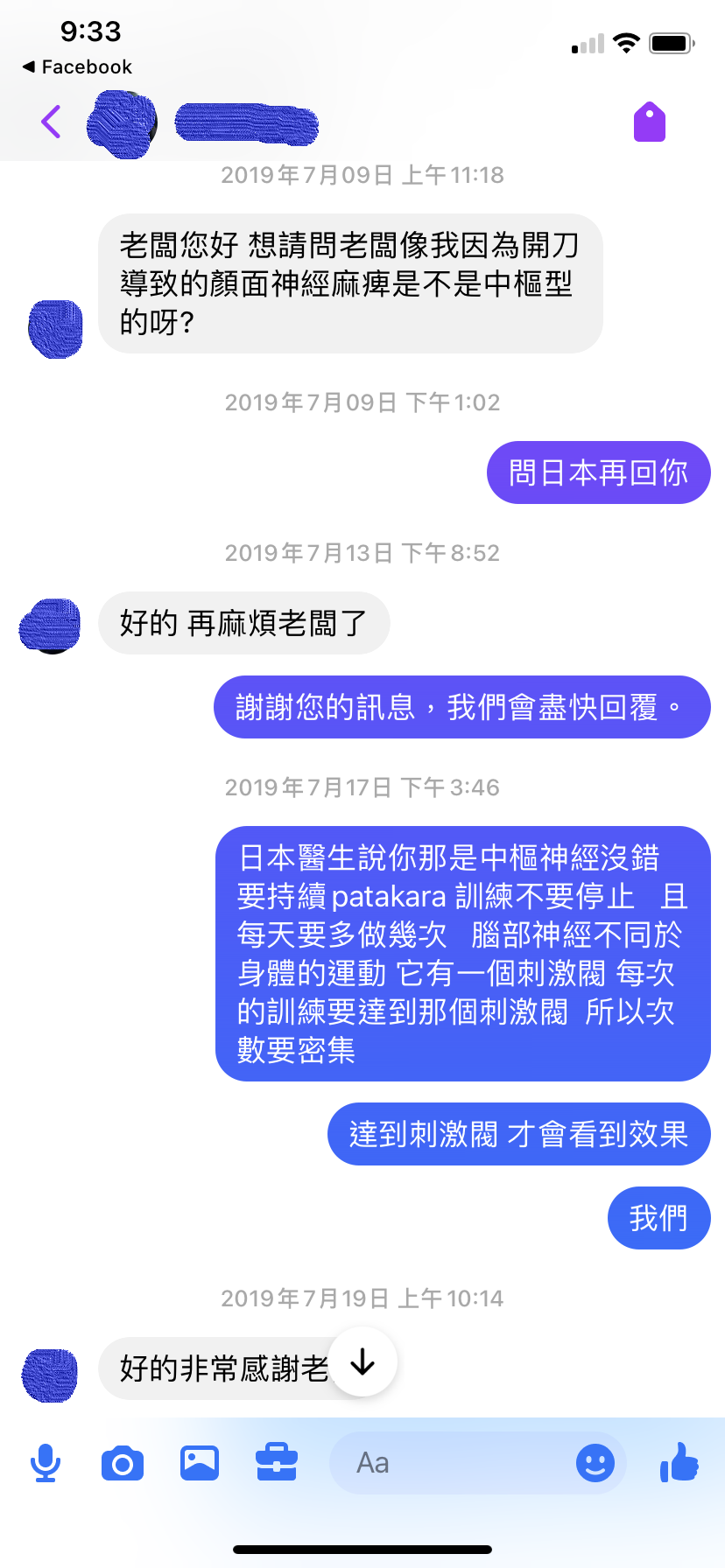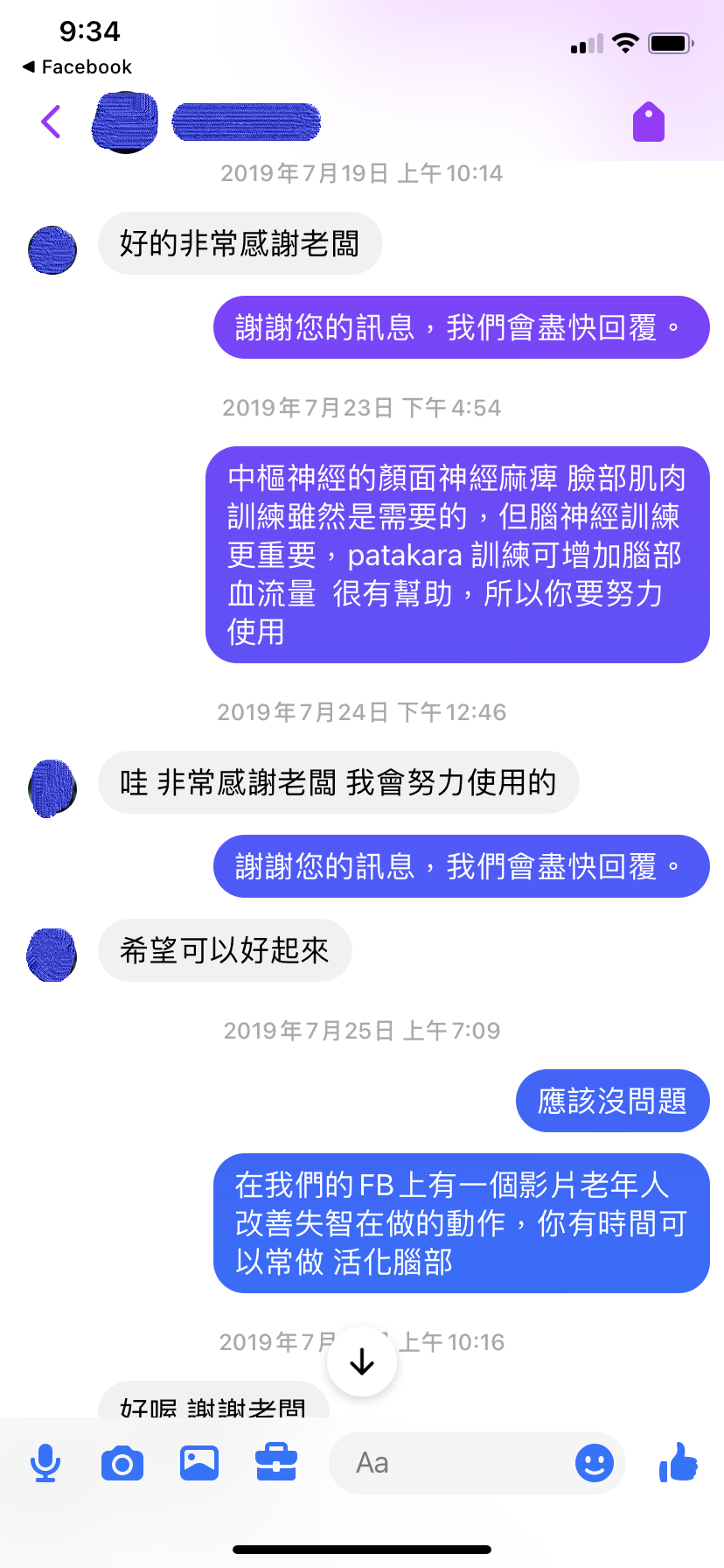 2019. 7. 19 Ok, thank you very much. Thank you for your message, will reply as soon as possible. 2019. 7. 23 Although facial muscle training is necessary for facial nerve paralysis of the central nervous system, but cranial nerve training is more important, Patakara training can increase blood flow to the brain and is very helpful, so you should use it diligently. 2019. 7. 24 Wow, thank you very much. I will try my best to use it. Thank you for your message, will reply as soon as possible. Hope can get better. 2019. 7. 25 Shouldn’t be a problem. There is a video on our FB of what the elderly are doing to improve their dementia. If you have time, you can do it often to activate your brain. 2019. 7. 25 |