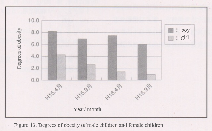 When sleep reaches the non-REM sleep stage, the body will secrete growth hormone. Normally people understand that growth hormone has a significant impact on children. It also has an effect in degrading fat and strengthening muscle in adults, and also preventing depression. In 2004 in Shiratori primary school in Maesawa Chou, Iwate prefecture, all students in a primary school were subjected to treatment using Facial Trainer PATAKARA for one whole year. The results of a survey showed that good quality sleep was achieved. I think that this is due to the ability to inhale a sufficient amount of air, leading to non-REM sleep. From figure 13 it can also be seen that cases of overweight people had decreased, especially in females. Although the number of individuals studied was insufficient for publishing the results, but it can be seen that being overweight is related to the fat degradation of growth hormone. Scientific papers also document that during non-REM sleep, the pituitary gland secretes hormone-interfering factors and immune factors, thereby increasing the ability to counteract disease and increase immune ability. In the study with the primary school, the number of sick absentees had also decreased. From this it can be seen that oxygen supply during sleep is crucial for overall health.