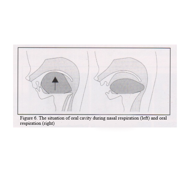 Being effected by oral respiration, saliva is easily dried out leading to the oral cavity developing residue and develop inflammation of the mucus and membrane of the respiratory tract. Due to long-term inflammation, the pharynx membrane will become inflamed and become swollen, and the respiratory tract will subsequently decrease in size and then be affected by the natural effects of gravity. An example of this is when adenoids swell up children, leading to snoring and OSAS.